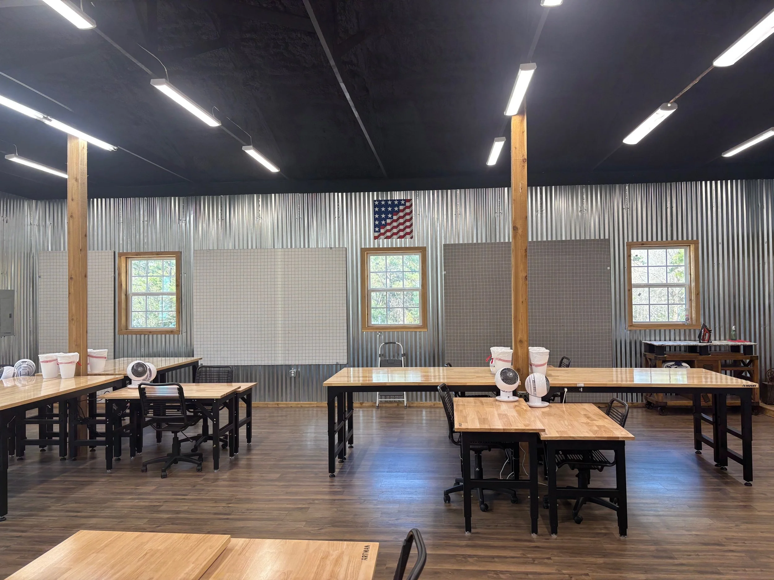 Each guest will be given two work tables - a 4’ table and a 6’ table. This allows plenty of room to spread out and organize your supplies. Additionally, a fan is supplied for each guest and exceptional overhead lighting brightens the room.